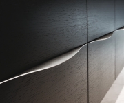 The sweeping curve of "Malibu" provides a visually continuous 'wave' form when used in typical kitchen installations. The front edge tapers in thickness from the centre to the ends. This elegant transition results in the handle looking attractive from all views and therefore equally suited to top, base or vertical installations.