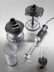 The extra chopper and double whisk attachments have unlimited use with a variety of foods such as soups, creams, sauces, vegetable purees, pancake batter and mousses. It can also be used as a whisk for whipping creams, beating egg whites or making mayonnaise.
