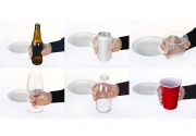 Most solutions on the market require a specific type of glassware: either stemware or a narrow-bodied cup. However, it is often not possible to dictate the type of glassware a party host will be using, which limits the universality of these competing solutions. The Holdaplate does not suffer from this problem, as it can nestle alongside literally any size cup, glass, bottle, can, or container. Consumers can purchase it and rest assured that it will function correctly no matter the particular glassware they decide upon for their gathering.